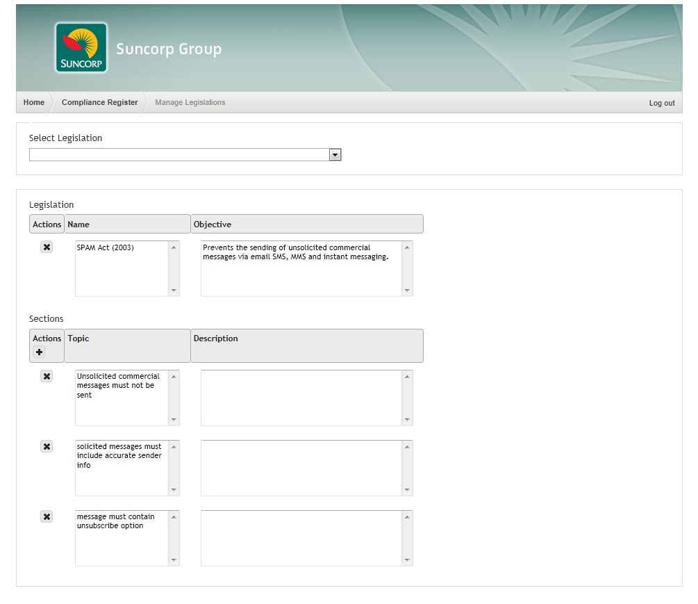 Developed an intranet browser based web application utilising jQuery custom controls for managing compliance registrations and legislation management.