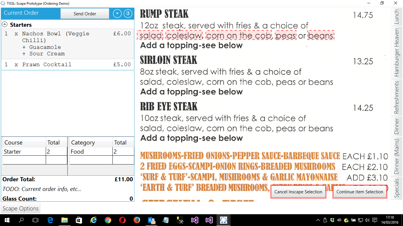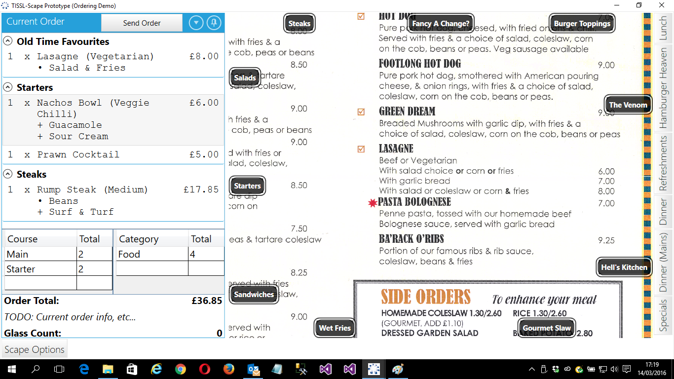 Created new type of ordering system for use at the till or by servers/waiters at the table (with compatible tablet devices), utilising existing menus for a consistent ordering experience.